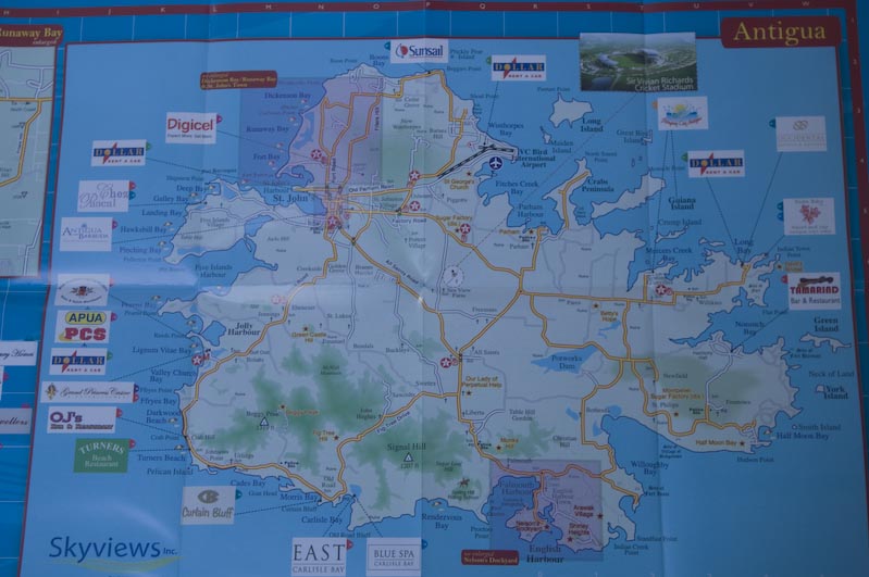 Antigua - Map, Flag, View onto the Island as we approach it from Guadeloupe |