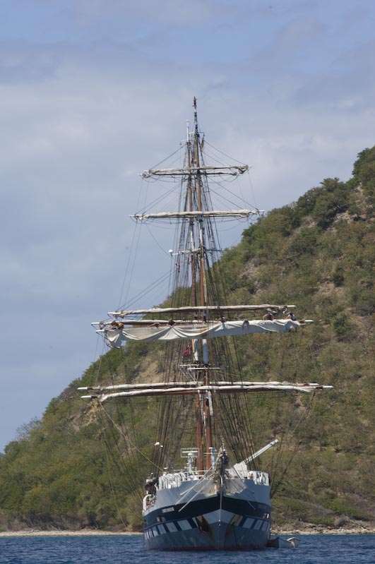Sea Cloud II at Anchor and, later on, departing under Sail... the only one of the large Square Riggers to do so |